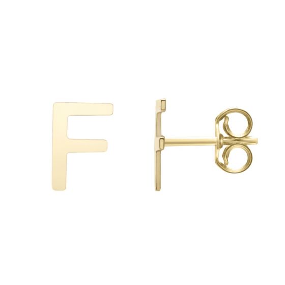 14K Yellow Gold 6.4×5.5mm Polished Initial- F Post Earrings with Push Back Clasp